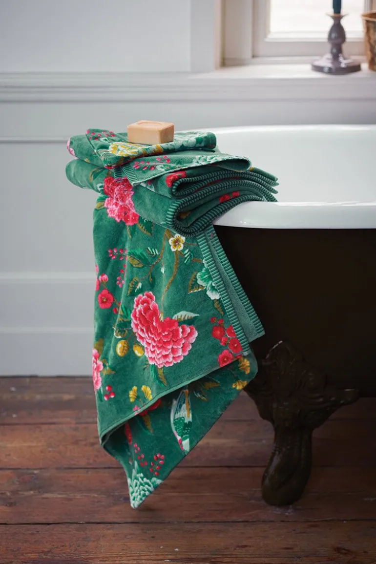 Apportez De La Fraicheur A Votre Linge De Bain Avec Les Serviettes Invite Good Evening En Coloris Vert. Les Serviettes Invite Good Evening En Coloris Vert Fonce Sont Ornees D’Un Imprime De Fleurs Orientales Elegamment Dessinnees. Un Oiseau Et Un Papillon Voletent Dans Les Fleurs. Les Serviettes Invite Sont Dotees D’Une Bordure A Rayures En Vert Claire Et Vert Fonce. L’Imprime Comporte Les Couleurs Jaune, Bleu, Vert, Rose, Rouge Et Blanc. La Collection De Linge De Bain Good Evening S’Accorde Elegamment Aux Autres Collections Creees Par Pip Studio De Facon A Creer Un Assortiment Du Plus Bel Effet Dans Votre Salle De Bain.