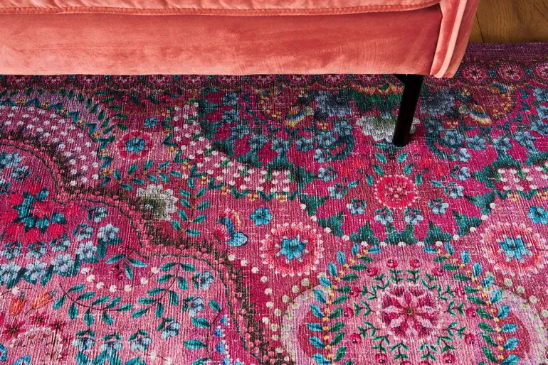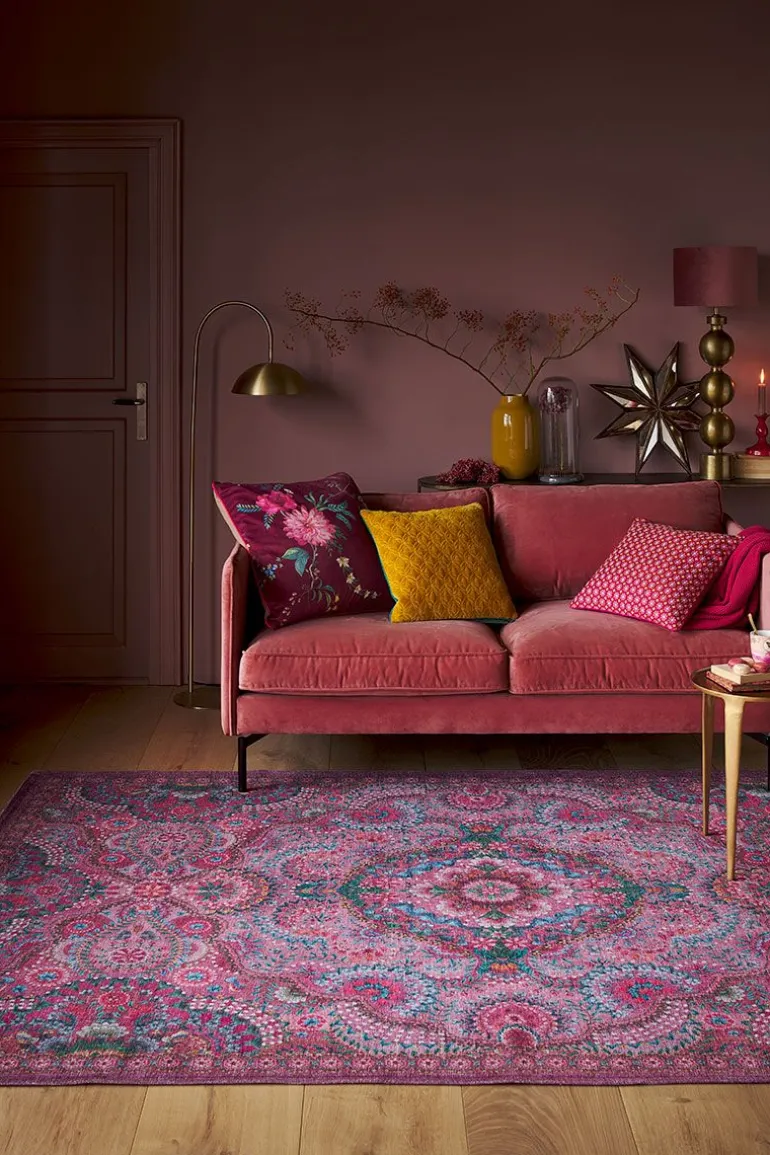 Pour Ce Tapis Moon Delight Rose Fonce, Pip S’Est Inspire Des Tapis Anciens Traditionnels Avec Un Motif Luxuriant Et Contemporain Cree Par Pip. Le Motif Est Compose De Petites Fleurs Qui Forment, Ensemble, Un Motif Riche Aux Multiples Couches.Le Tapis Est Imprime Et A Un Look Vintage AuThéntique.